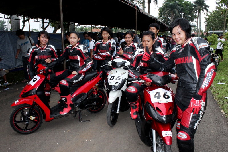 GILAMOTOR.com, Bogor. – Ada yang menarik dari perhelatan Yamaha Cup Race (YCR) 2011 seri ke 13 di sirkuit non permanen Lanud Atang Sanjaya, Minggu 30 Oktober 2011, kemarin. 11 wanita cantik ambil bagian ngebut di lintasan sepanjang 820 meter. Mereka menjabani dua race masing-masing 6 lap.