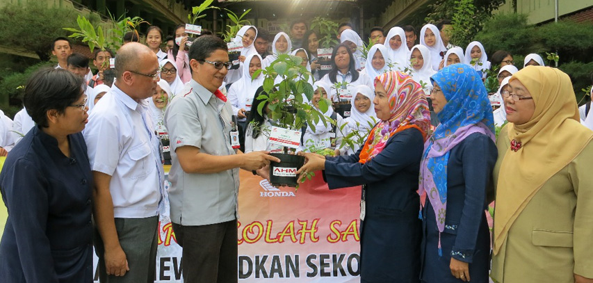 Selain itu, AHM juga memberikan bantuan berupa mesin pencacah plastik, mesin fogging, alat bor biopori, tong kompos cair, dan bak kompos padat untuk beberapa sekolah.