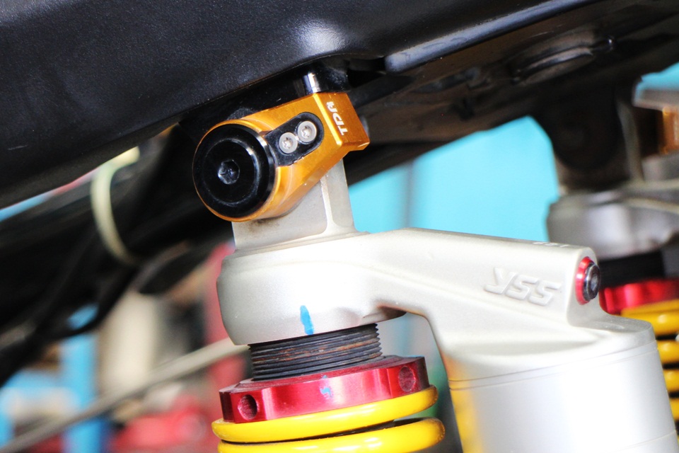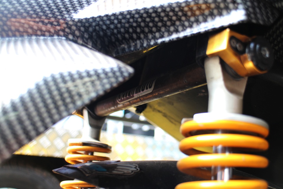 “Penggunaanya biasanya untuk lebih menstabilkan kerja sok dan rangka motor, hal ini karena rangka belakang yang cukup lebar”, ujar Teguh Punggawa Ultra Speed Racing.