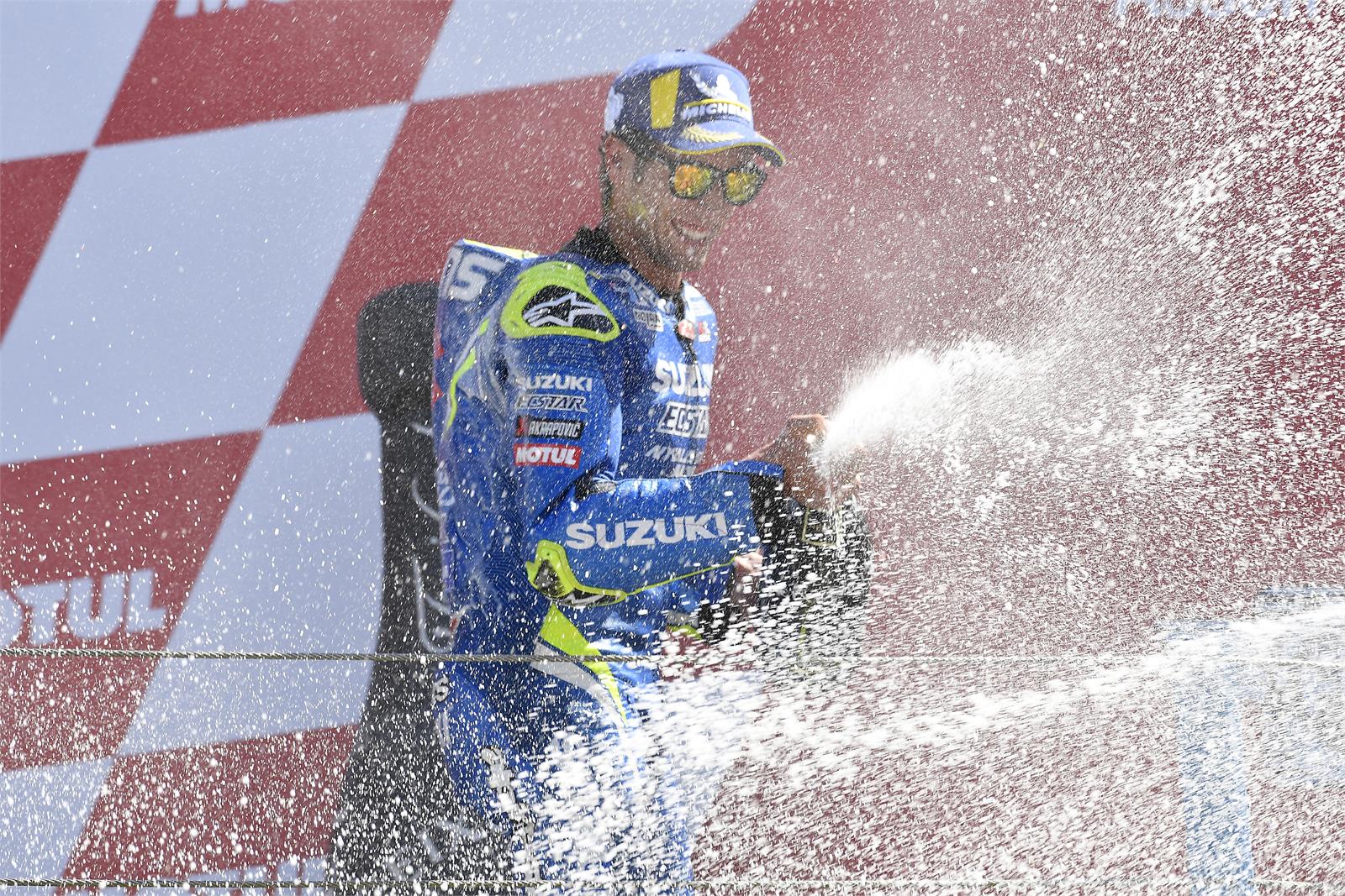 “Sebelum balapan, saya sempat didera rasa sakit perut, namun berkat pertolongan tim medis saya bisa cepat merasa lebih baik, jadi saya benar-benar berterima kasih kepada mereka. Ketika balap akan dimulai, saya berpikir ‘wow, ini akan menjadi balapan milik saya!’. Selama pertempuran fantastis ini saya belajar banyak hal. Kecepatan Suzuki GSX-RR kami bagus dan saya bisa menikmatinya! Ada banyak over-taking dan gerakan yang ketat, jadi saya selalu berusaha mendorong untuk tetap bersama yang lain dan menahan posisi saya. Saya merasa sangat positif dengan motor dan dengan tim saya, kami semua benar-benar ingin melakukan peningkatan dan menang. Saya berharap saya dapat tetap berada di puncak untuk balapan berikutnya juga. Saya merasa percaya diri untuk Sachsenring” Demikian ungkapan kegembiraan Alex Rins ketika menerima piala kemenangan Podium ke-2.