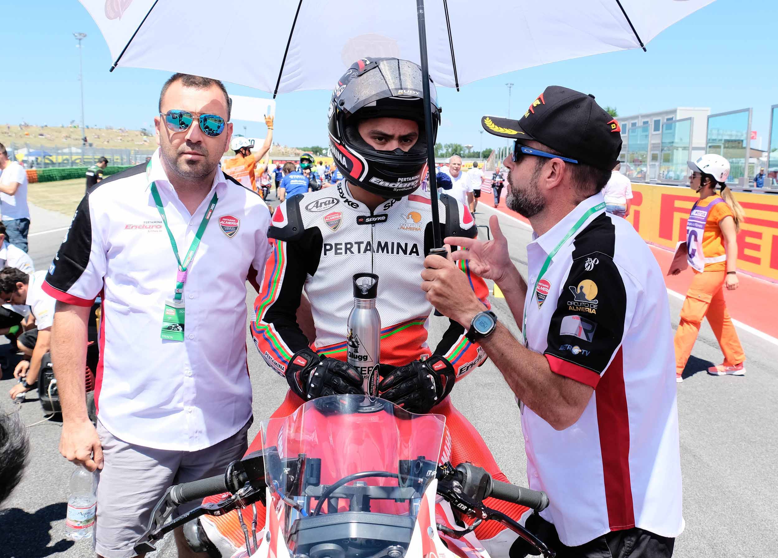 “Sayang sekali Adrian terjatuh disaat balapan hanya tinggal tersisa 3 lap lagi. Tapi di seri kali ini ia menunjukan penampilan yang luar biasa, karena start dari urutan ke-22 dan berhasil maju hingga posisi ke-7. Tapi saya cukup senang melihat penampilan Adrian hari ini,“ pungkas David Garcia, selaku manager Pertamina Almeria Racing Team.