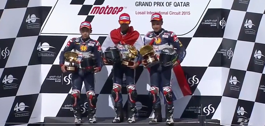GILAMOTOR.com – Ambisi Andi Izdihar meraih hasil terbaik di Asia Talent Cup (ATC) 2015 berbuah manis. Pebalap didikan PT Astra Honda Motor (AHM) ini berhasil meraih podium pertama di race kedua ATC Qatar, Minggu (29/3/2015).