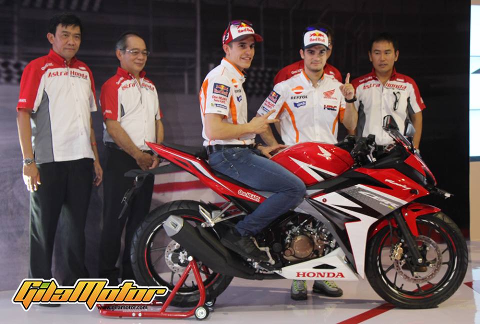 GILAMOTOR.com – Marc Marquez dan Dani Pedrosa mendampingi kehadiran All New Honda CBR150R yang diluncurkan di Sirkuit Sentul, Bogor, Jawa Barat, Minggu (14/2/2016).