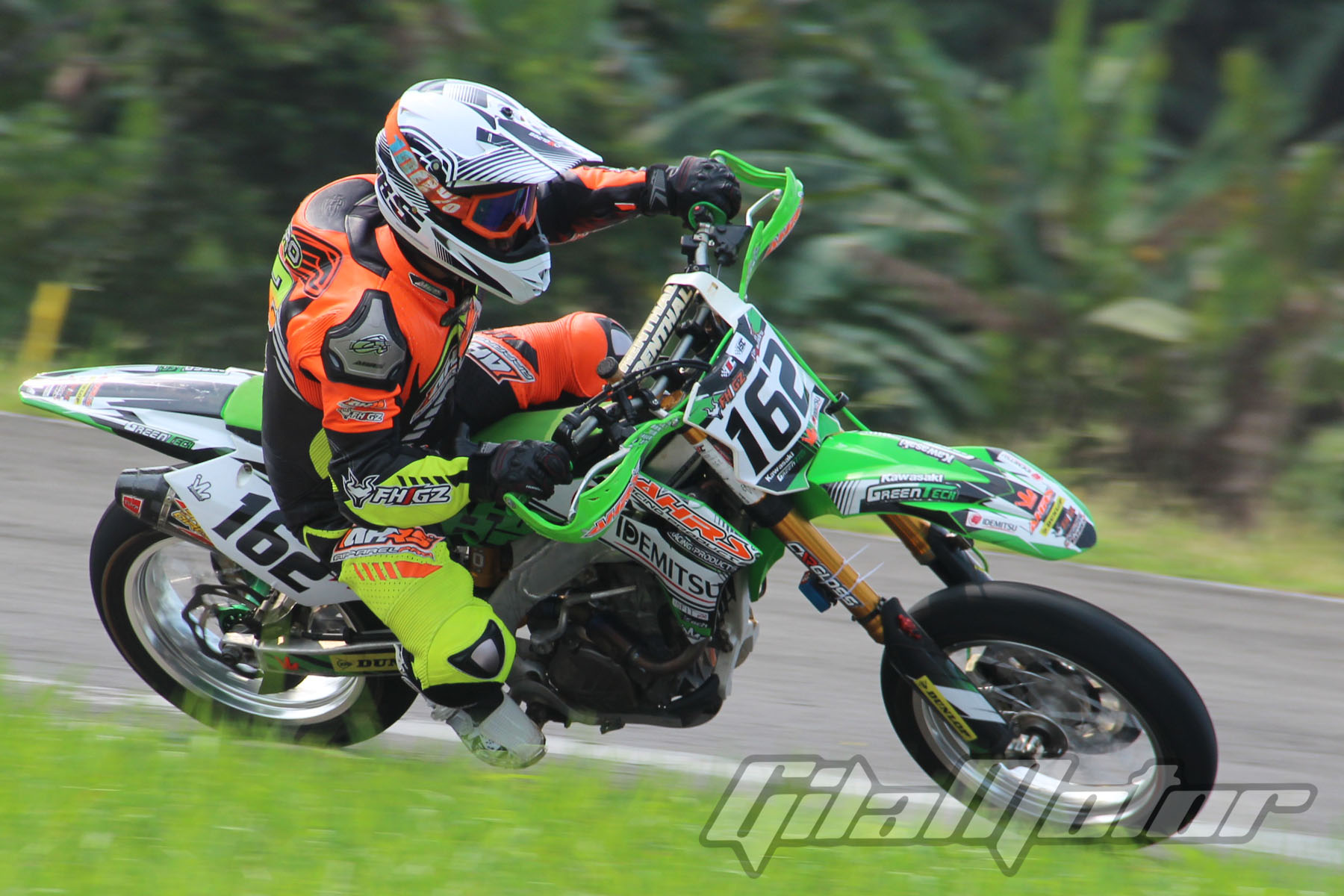Lama malang melintang di dunia balap road race juga memberikan nilai lebih baginya takala berlaga di kejuaraan balap supermoto ini Gilmoters. “Lintasannya 90 persen aspal ini menguntungkan buat saya karena biasa balap road race. Jadi tinggal adaptasi di lintasan tanah saja,” lanjutnya.