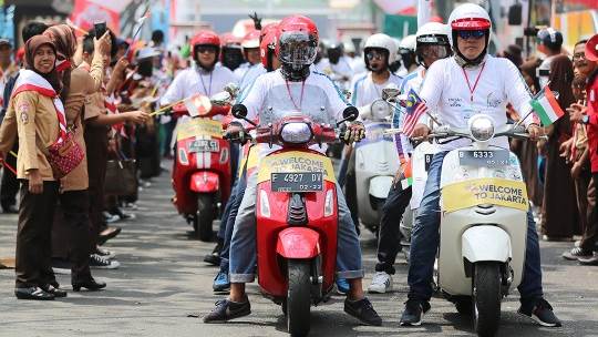 Gabungan dari berbagai komunitas Vespa akan mengiringi kirab obor Asian Games yang melintasi 4 area di DKI Jakarta.