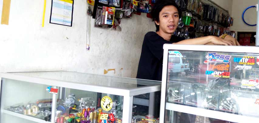 “Mulai dari piranti pendongkrak tampilan bodi, kaki-kaki sampai mesin kami tawarkan,” buka Reza Anggara punggawa gerai.