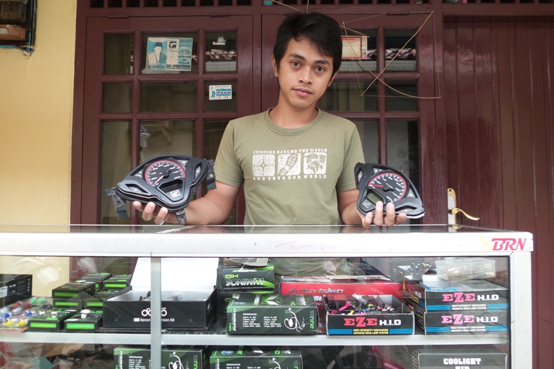 Tingkat keterangan cahayanya pun bisa diatur sesuai keinginan pemesan. “Kalau spidometer jenis digital, pengerjaan agak lebih rumit dan memakan waktu dibandingkan dengan spido meter analogâ€, ujar lajang lulusan STM jurusan bubut ini.