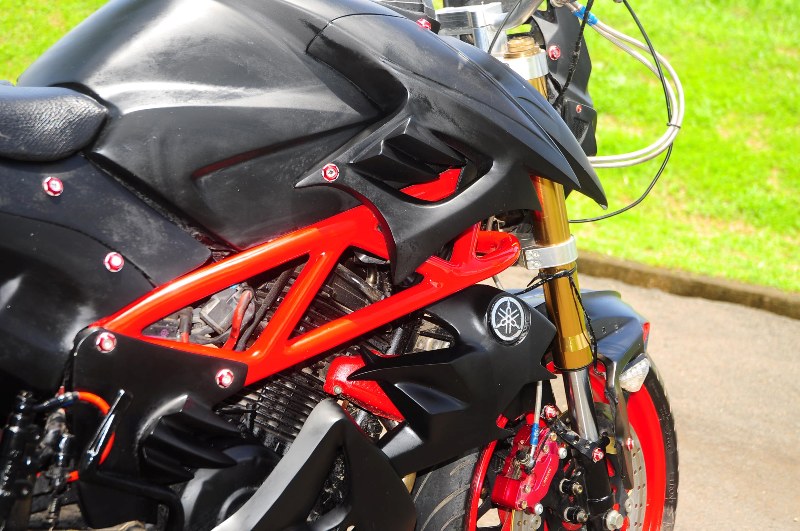 GILAMOTOR.com. – Aslinya, Yamaha Byson adalah sebuah motor sport beraliran street fighter gagah dengan kaki-kaki gambot untuk ukuran motor sekelasnya. Tapi yang namanya modifikasi banyak ide yang ingin dicurahkan dan diwujudkan langsung ke motor.
