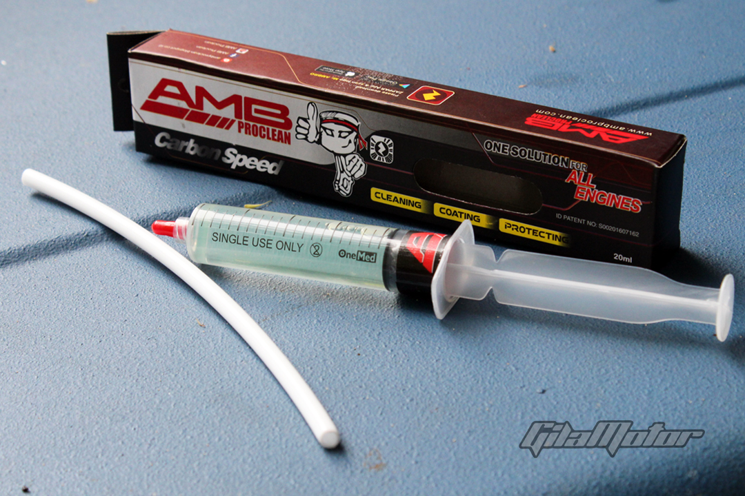 Langkah perawatan ini bisa dilakukan setiap 10.000 km. Intervalnya bisa lebih cepat apabila motor sering diajak melintasi kemacetan. Tapi tenang, Gilmoters. Pakai AMB Procelan gak bikin kantong bolong karena harga untuk kemasan 20 ml (yang dilengkapi suntikan) hanya berkisar Rp25.000 – Rp 30.0000.