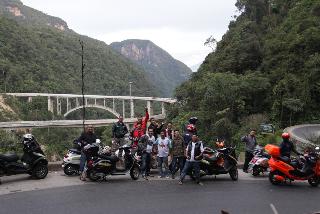 Tak lama setelah lepas dari Kelok Sembilan, sejumlah Vespa yang beriringan menyambut rombongan ini. “Ya , mereka adalah panitia penyambutan dari PT.Ekaindo Jaya Abadi yang merupakan dealer Piaggio wilayah Payakumbuh, Sumatera Barat,†tambah Itok.