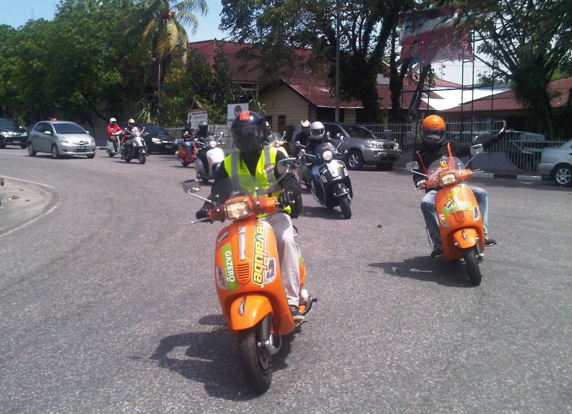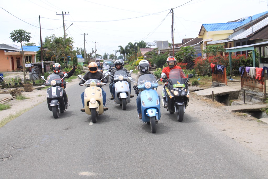 “Nah, skuter sudah kami kirim lewat paket hampir seminggu sebelumnya. Jadi start di Pekanbaru kami langsung mengambil skuter-skuter kami di PT. Skuterindo Mandiri Lestari, Pekanbaru, Riau†ujar Itok Harsono, Ketua panitia.