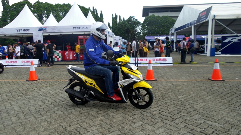 Terlihat istimewa karena Yamaha menyiapkan arena khusus untuk skutiknya itu. Pengunjung juga bisa merasakan langsung sensasi menunggangi skutik yang diklaim bertenaga 9,52 Ps pada 8.000 rpm dengan torsi 9,6 Nm di 5.500 rpm itu.