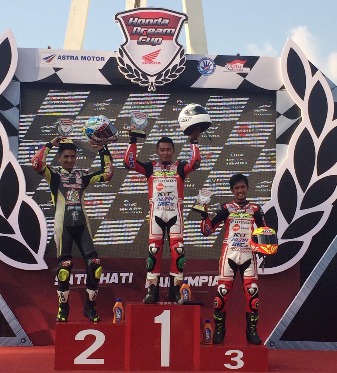 GilaMotor.com – Putaran kedua gelaran Honda Dream Cup (HDC) 2017 menjadi bukti keganasan tim binaan PT Daya Adicipta Motora (DAM) yakni Honda Daya Trijaya Racing Team dan Honda Daya Golden Racing. Bagaimana ngga ganas, kedua tim tersebut mampu memborong podium di seri yang berlangsung di sirkuit Simpang Lima, Semarang (19-20/8) lalu Gilmoters.