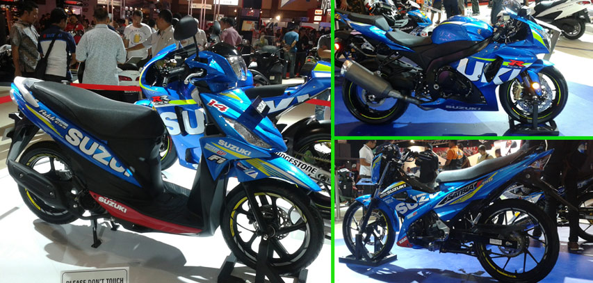 GILAMOTOR.com – PT Suzuki Indomobil Sales (SIS) menampilkan beberapa varian sepeda motor yang mengusung tema MotoGP. Bukan tidak mungkin, ini akan menjadi pilihan baru bagi Suzuki nantinya.