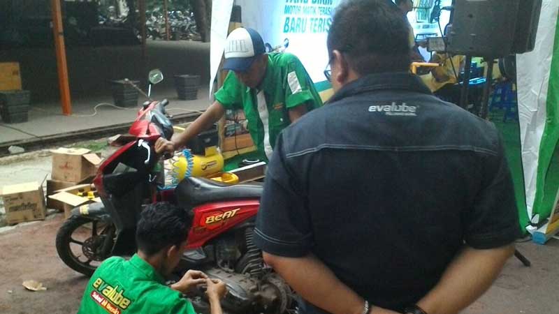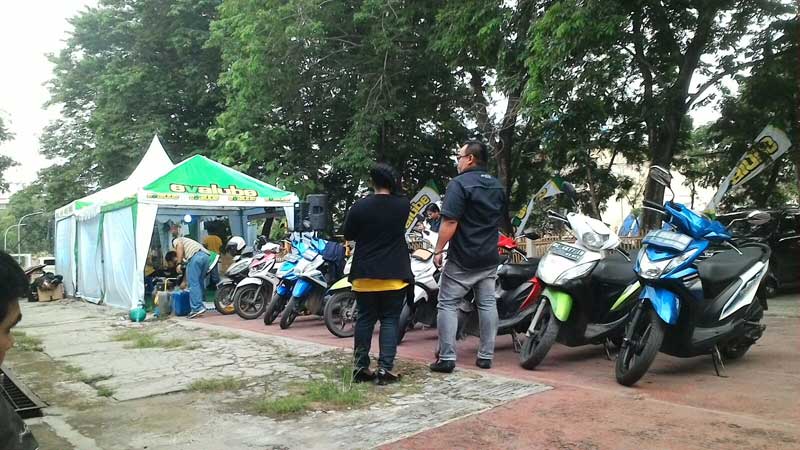 Pada event itu Evalube memberikan promo penggantian oli gratis untuk 50 motor pertama dan tentunya serangkaian games berhadiah dari Evalube.