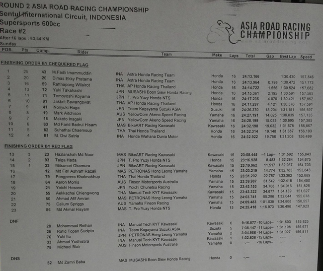 Hasil race 2 Supersport 600 ARRC Sentul :