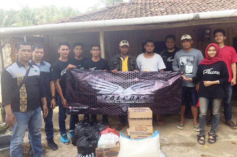 Bekerjasama dengan Gunung Kidul CBR Riders (GRIDS) dan Ikatan Anak Rantau Gunung Kidul (IKARAGIL), komunitas pengguna Honda CBR yang bernaung didalam Asosiasi Honda CBR (AHC) ini mendatangi kedua lokasi tersebut. Bantuan berupa paket sembako diserahkan di Posko pengungsian warga Tanjung Sari, secara simbolis oleh Yosua Olga selaku bendahara FALCONS kepada perwakilan RW setempat.