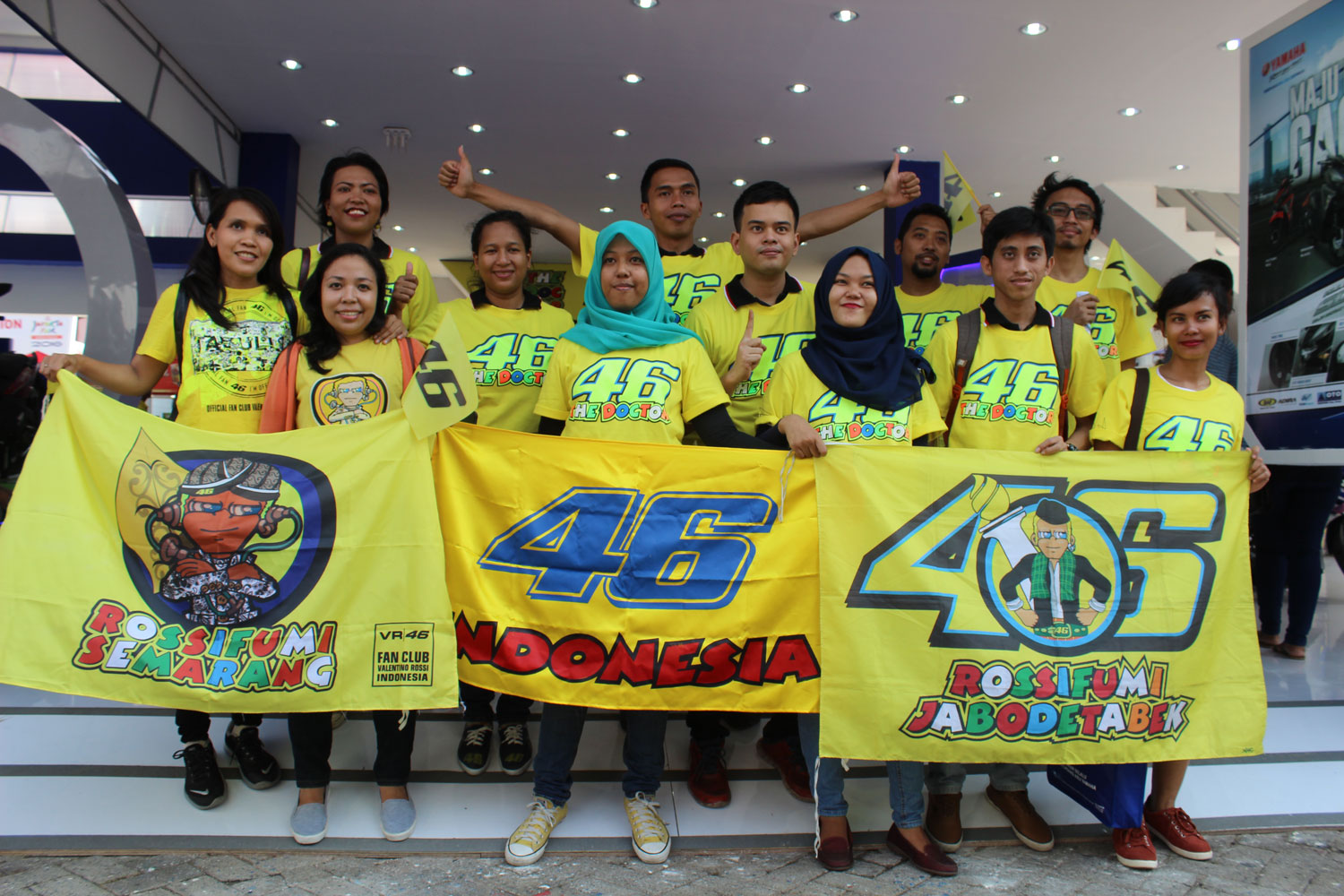 Diluncurkannya produk apparel 46|ASIA di Indonesia tidak hanya membuat para kolektor merchendise Valentino Rossi senang, pun begitu dengan fans Rossi yang datang pada sesi peresmian Exclusive Distributor Yamaha Indonesia di Jakarta Fair 2016 (11/6). Para penggemar yang tegabung dalam Fan Club Valentino Rossi Indonesia itu menyambut hangat datangnya merchendise resmi milik idolanya tersebut.