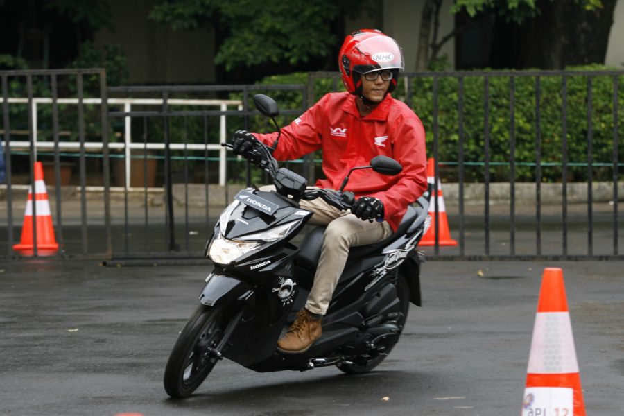 Sayang, saat sedang asik-asiknya menjajal New Honda BeAT Street eSP hujan tiba-tiba mengguyur Gilmoters. Kontan bang Gilmot tancap gas kembali ke pinggir arena test ride. Dan ciiiiit salah satu fitur unggulan yakni Combi Brake System (CBS) bekerja dengan optimal.