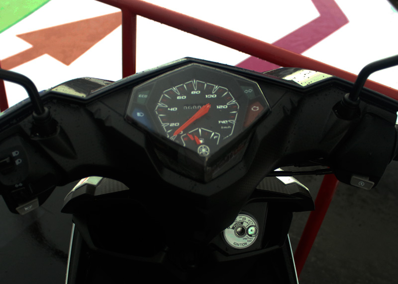 Perhatian Gilamotor.com juga mengarah ke area speedometer dimana terdapat indikator Eco didalamnya. Fitur ini akan menyala saat New Mio M3 125 diajak berjalan mulai dari kecepatan 20 km/jam bro en sis.