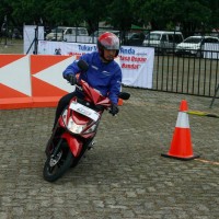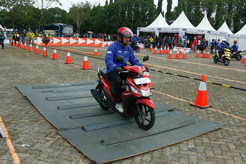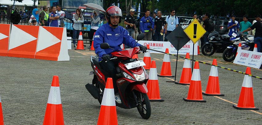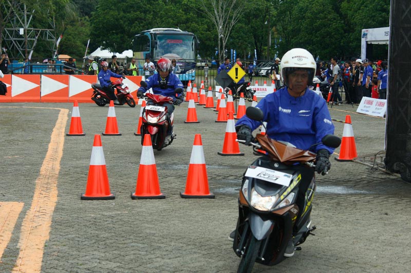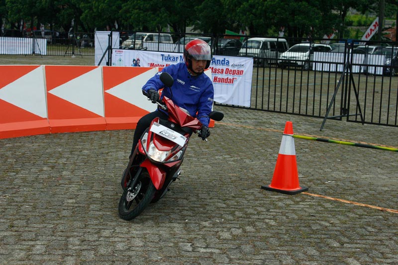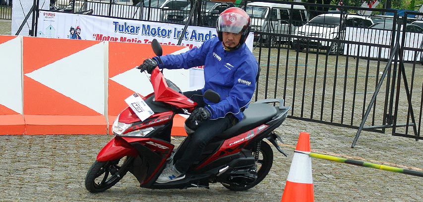Handling New Mio M3 125 juga sangat ringan, utamanya saat diajak menikung dan zig zag melewati cone yang disediakan di test track. Apalagi, New Mio M3 125 velg palang yang Gilamotor naiki hanya memiliki berat isi 92kg.