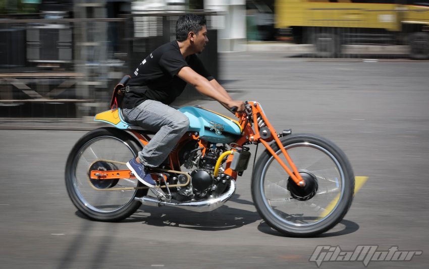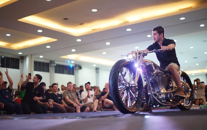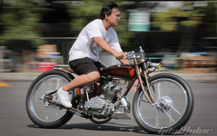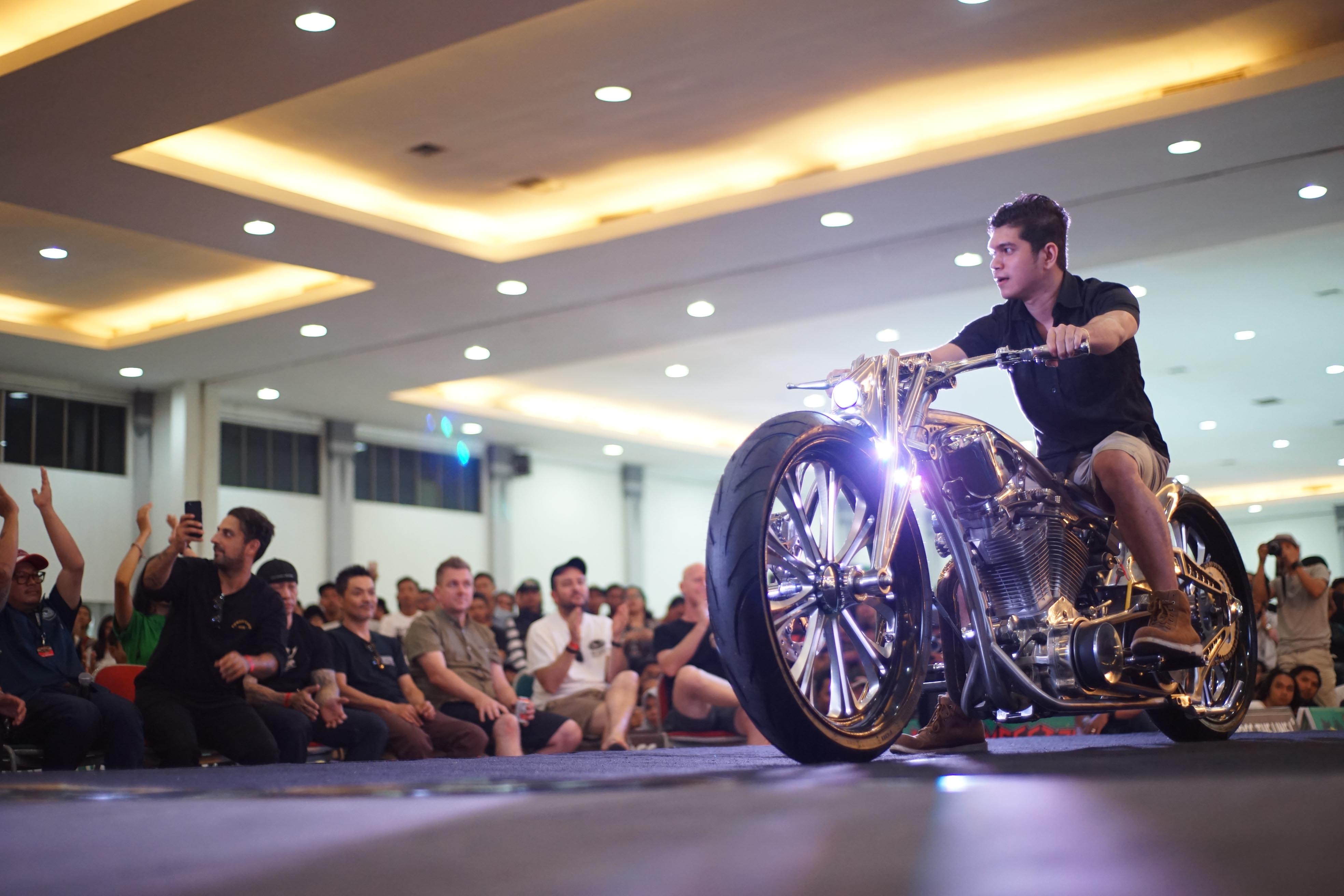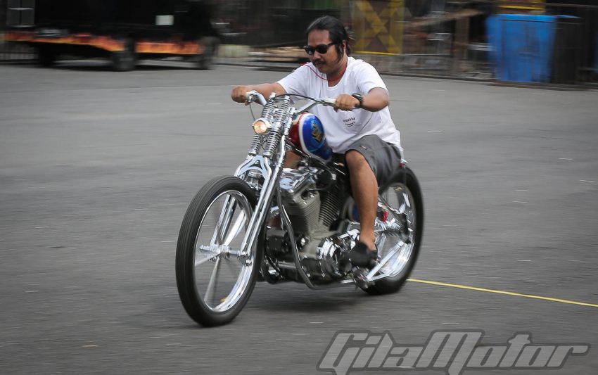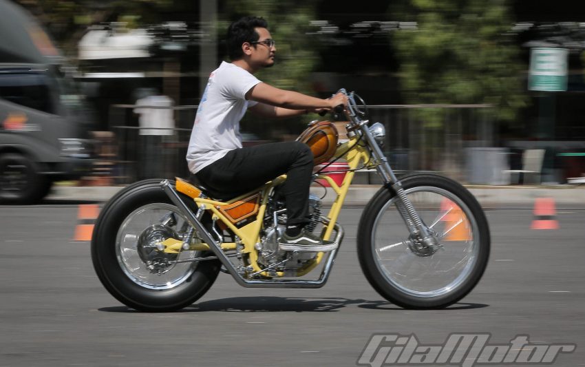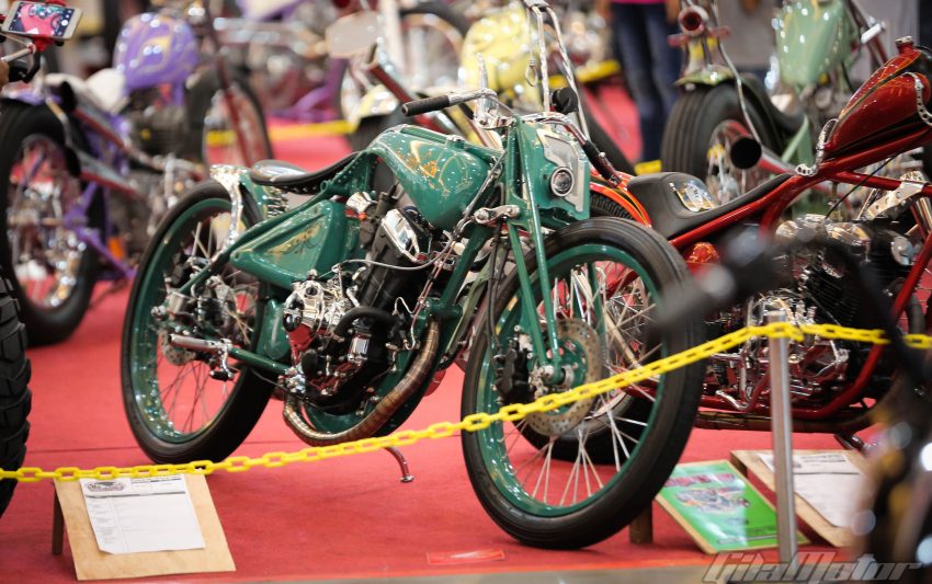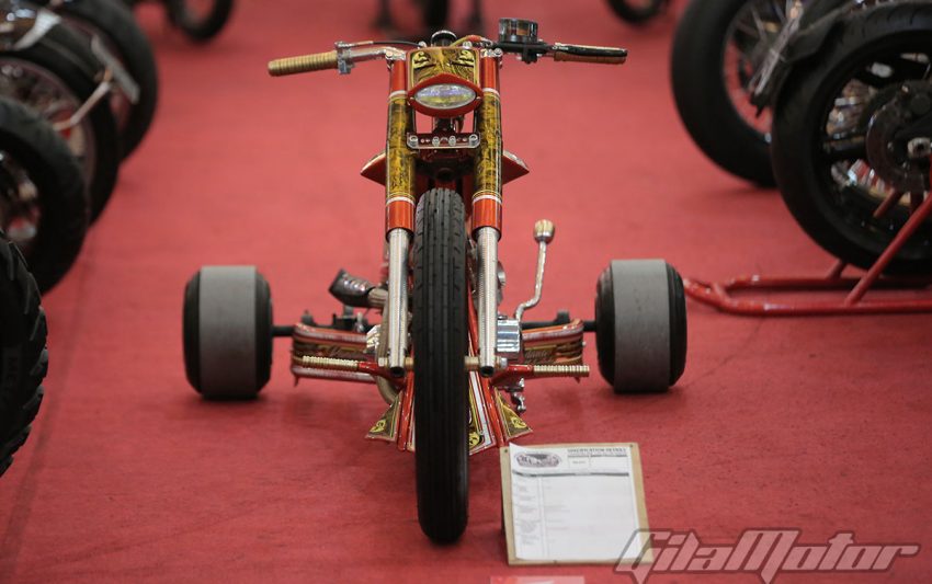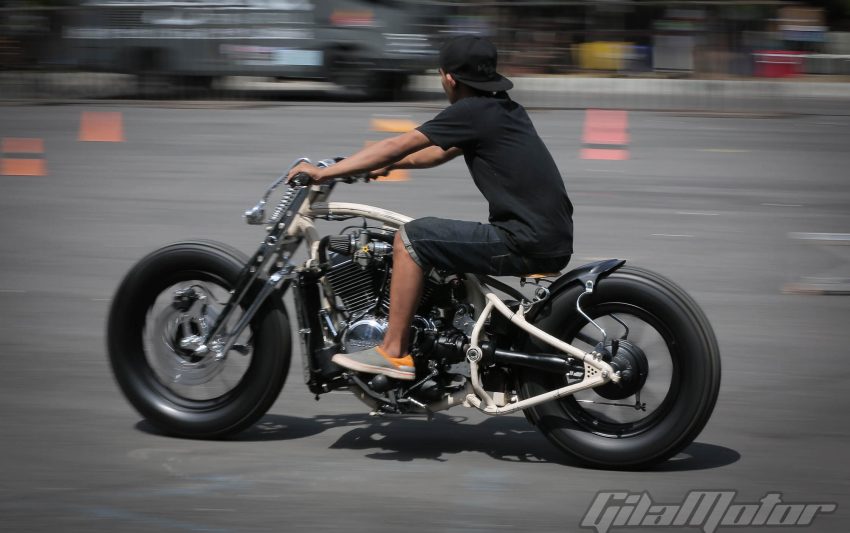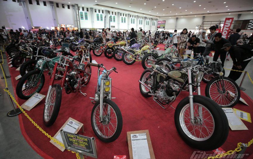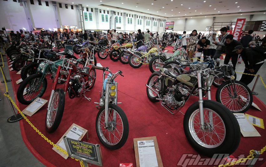 Puluhan ribu pasang mata dimanjakan sama ratusan motor custom buah karya builder dalam negeri yang nggak kalah keren dibandingkan sama kreasi-kreasi builder mancanegara. Nggak heran kalau motor-motor dengan kapasitas mesin yang beragam ini mengundang decak kagum para tamu undangan yang datang dari berbagai negara. Seperti Yaniv evans (Powerplant Motorcycle – AS), Kaichiroh Kurosu (Cherry’s Company – Jepang), Hideki Hoshikawa (Asterisk Kustom Works – Jepang), Shige Suganuma (Mooneyes – Jepang), Jetwrench Art Studio (Jepang), hingga Christian Sosa (Sosa Metal Works – AS).