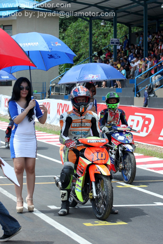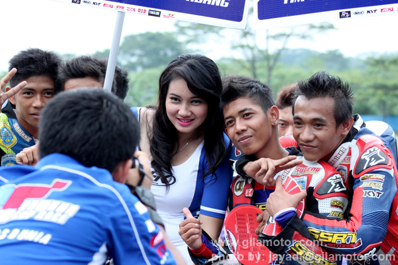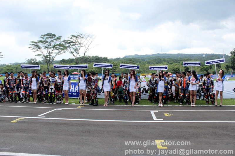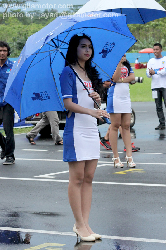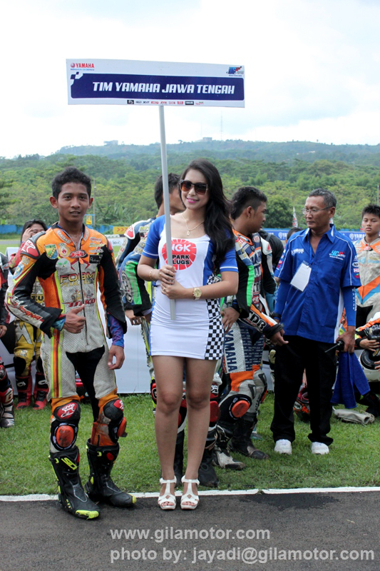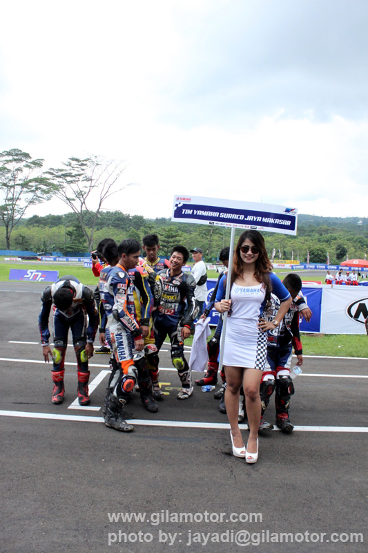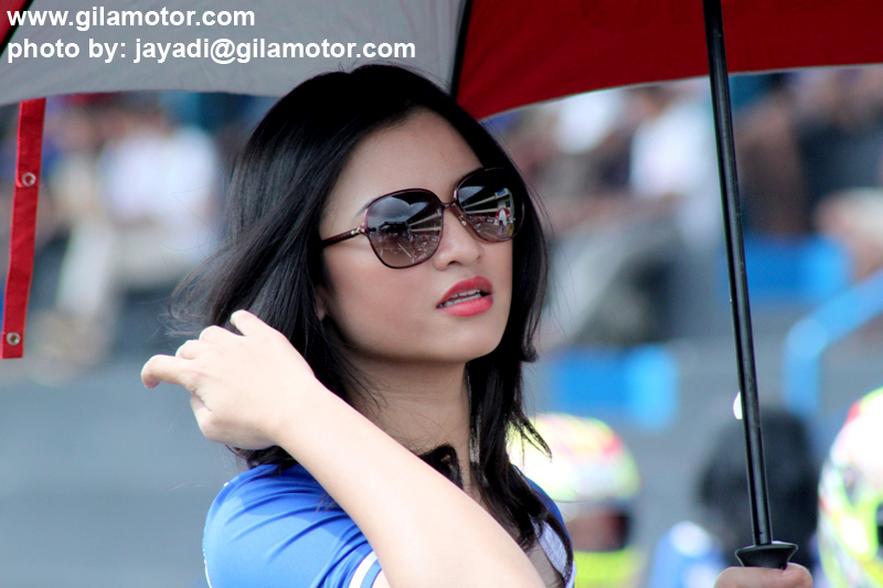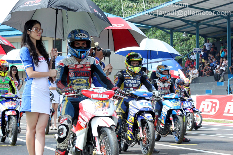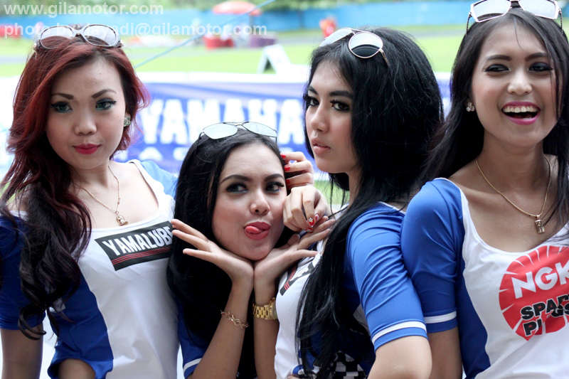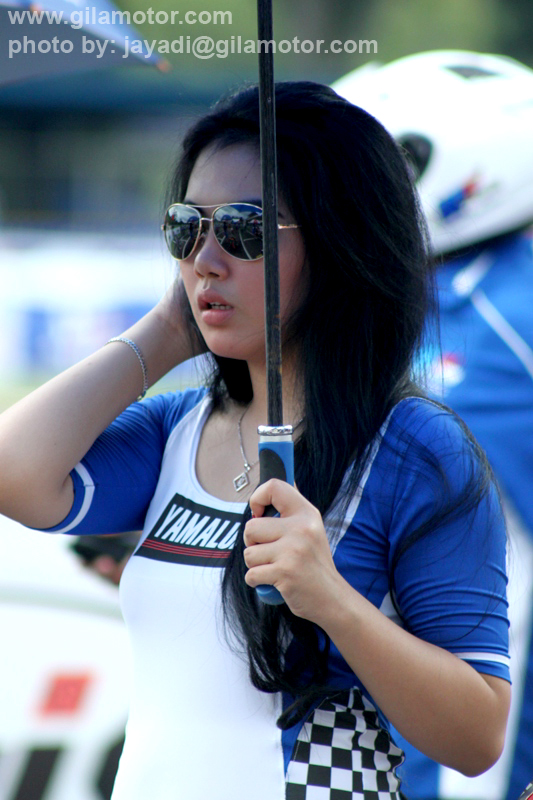 GILAMOTOR.com – Di antara kerasnya persaingan para pembalap Yamaha di final Yamaha Cup Race (YCR) 2013 di Sirkuit Sentul Kecil, ada kelembutan dari para grid girl yang bertugas memayungi para pembalap.