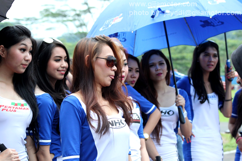 Barisan gadis-gadis cantik ini juga jadi sorotan mata para penonon yang memadati tribun sirkuit sejak pagi hari.