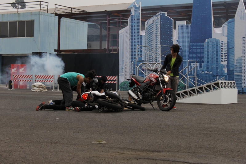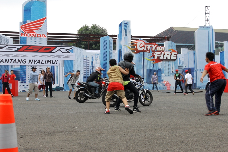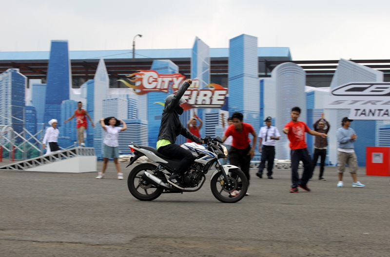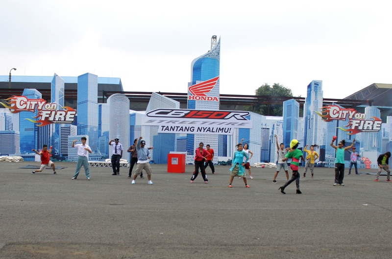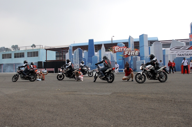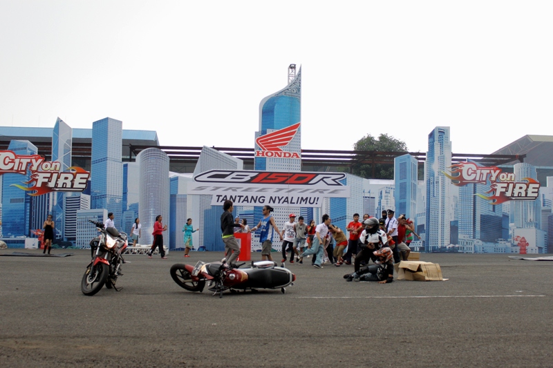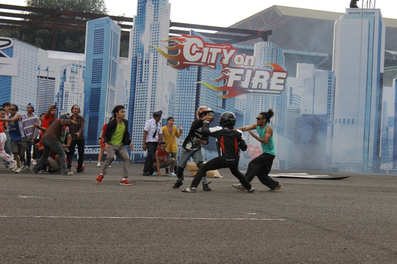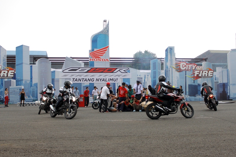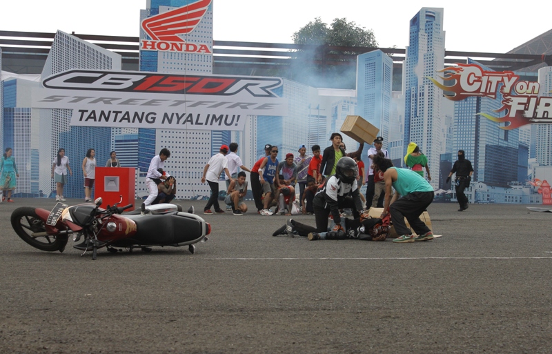 Tapi tenang, bentrokan fisik, bakar-bakaran dan perampasan motor oleh geng motor itu adalah bagian dari pertunjukkan bertema City of Fire, yang merupakan bagian dari rangkaian prosesi peluncuran CB150R StreetFire.