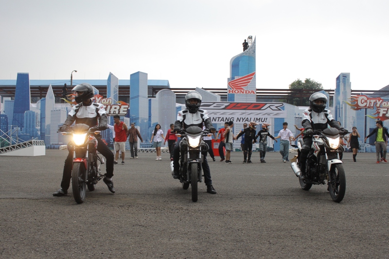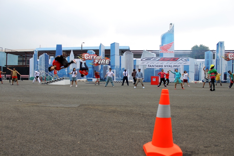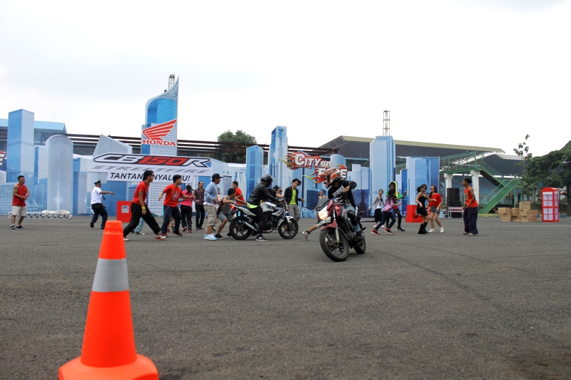 Aksi teatrikal yang disuguhkan Honda merupakan cerminan karakter motor sport 150cc yang sporty, beraura balap, cepat dan tangguh.