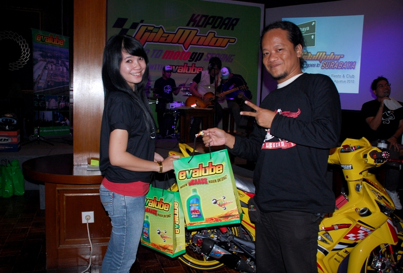 GilaMotor, SURABAYA.- Kopdar GilaMotor Surabaya yang digelar di The House Resto & Club di Jl. Taman Apsari 69 – 71 Surabaya hari ini (22/8) berlangsung semarak. Suksesnya acara ini tak luput dari dukungan penuh yang berikan Evalube kepada GilaMotor.com dan GilaMotor Mania.