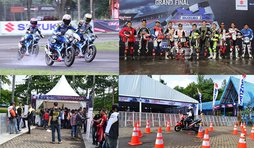 Namun, keseruan juga nampak di area lain Sirkuit sentul, Bogor, Jawa Barat yang kali itu dijadi lokasi perhelatan. Bagian belakang tribun sentul dipenuhi komunitas Suzuki yang ternyata sedang bersaing di Suzuki Gymkhana-moto Competition.