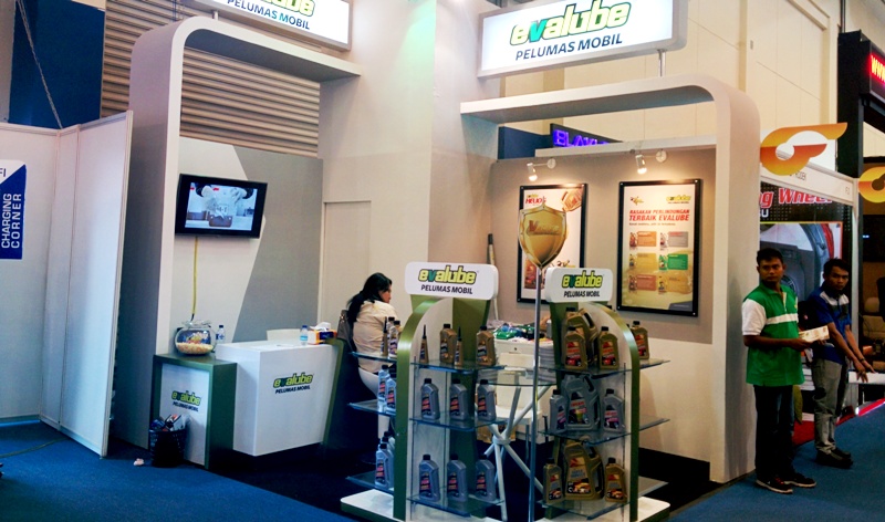 Mengambil lokasi booth di Hall 2 No. F1, Evalube memberikan program penjualan berupa gratis 1 botol oli Evalube Helios Ultra dan Helios Super setiap pembelian 3 botol oli tersebut. Selain itu, setiap pembelian 4 botol oli Evalube super Transco (Mesin mobil diesel) akan mendapat gratis 1 botol oli yang sama.
