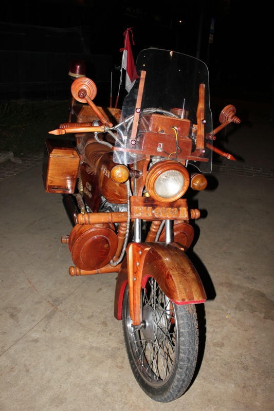 Usahanya patut diacungi jempol karena tentunya jadi sebuah karya yang membanggakan bagi sang builder nya. Pasalnya, tungganya ini kini terlihat seperti sebuah motor-motoran yang terbuat dari kayu. Yang luar biasanya lagi, motor ini bukan sekedar pajangan saja tapi juga sebagai alat transportasi salah satu warga Kerinci, Jambi, ini.