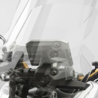 Melihat lebih detil, selain dari ban dual purposenya, kemampuan melibas trek rusak tergambar dari pergerakan suspensi depan yang panjang. Yang juga cukup menarik perhatian adalah desain muffler dengan moncong menghadap ke atas.