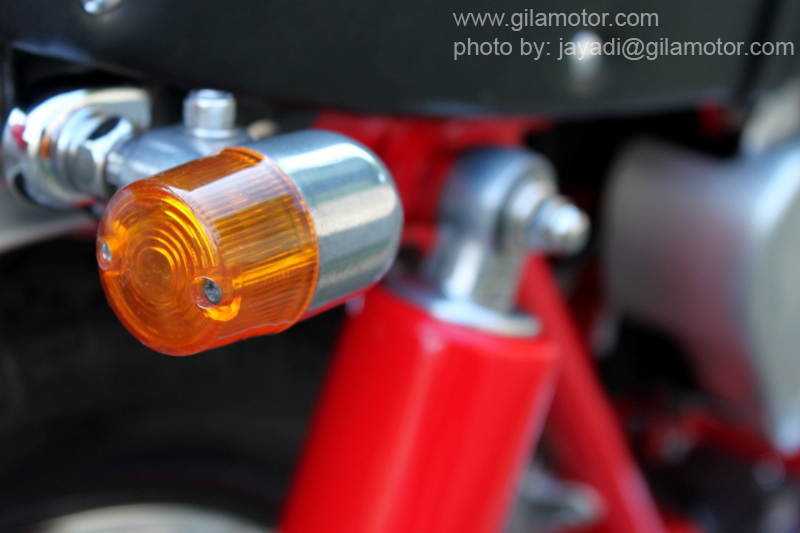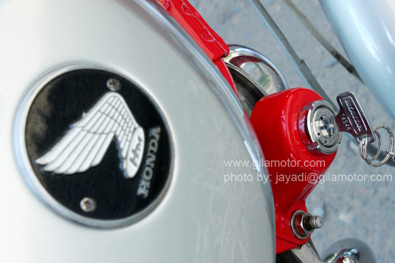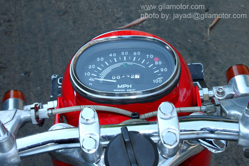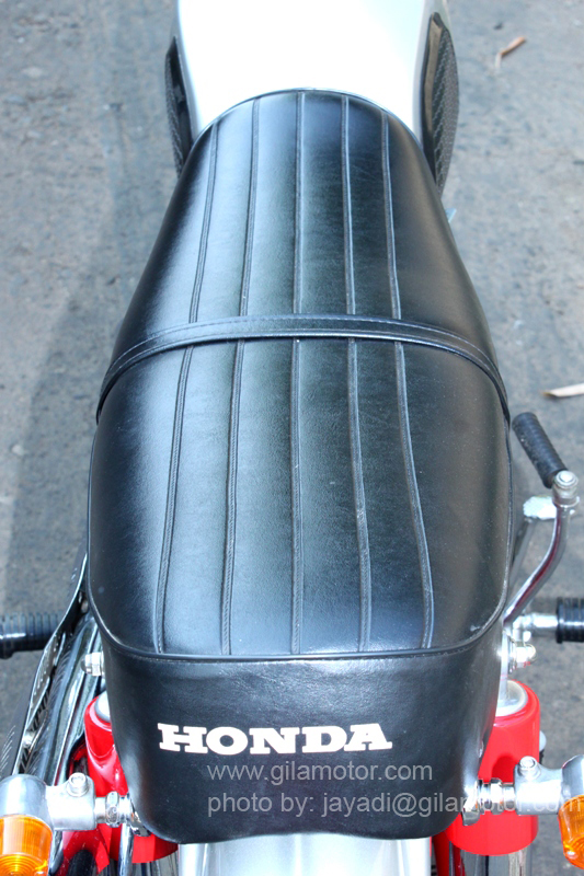 Sebisa mungkin Ucup mempertahankan tampilan yang original dari CB ini. Lihat saja detil foto-fotonya, beberapa komponen masih asli sampai ke baut-baut mesinnya. Urusan baut, Ucup mengaku dibantu oleh temannya yang kolektor motor antik. Maklum, kepala baut jaman sekarang berbeda dengan kelapa baut jaman dulu yang ada angka-angkanya sesuai ukuran bautnya.