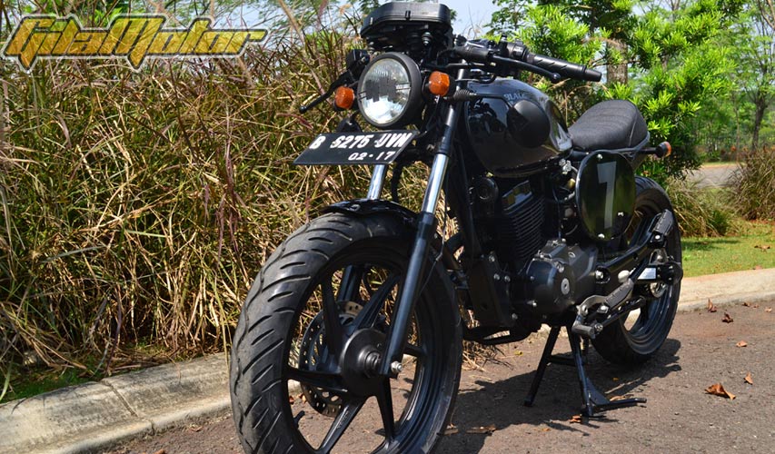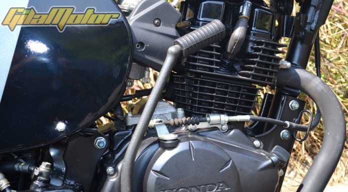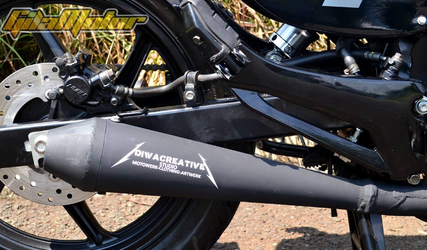 Terakhir, karena Lexy yang berprofesi sebagai pengusaha ingin tunggangannya makin gagah, maka konsep warna serba hitam di sekujur bodi hingga kaki-kaki menjadi jawabannya. “Agar sesuai tema, kami sisipkan julukan motor ini, yakni Black Flag,” tutup Wahyu yang mengaku waktu pengerjaan hanya 16 hari saja.