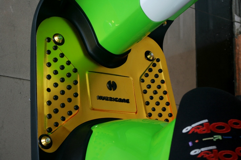 Bodi tinggal di-brush ulang dengan motif grafis simple. Urusan semprot-menyemprot Scoopy ini diserahkan ke Jefrey Art yang ada di kawasan Cibubur. Duo tone color, hijau dan putih dari cat merek Dupont mendominasi warna bodi Scoopy ini.