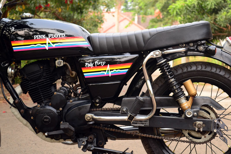 Sebagai penggemar berat Pysidelic, Dwi Istianto mencoba total dalam kegilaanya terhadap band Roger Water tersebut. Totalitas dia tumpahkan di tunggangan hariannya melalui balutan warna di tubuh CB 100 berjantung Tiger. Kelir pelangi khas Pink Floyd menyelimuti Honda Tiger lansiran 2008 yang sudah berganti wujud itu.
