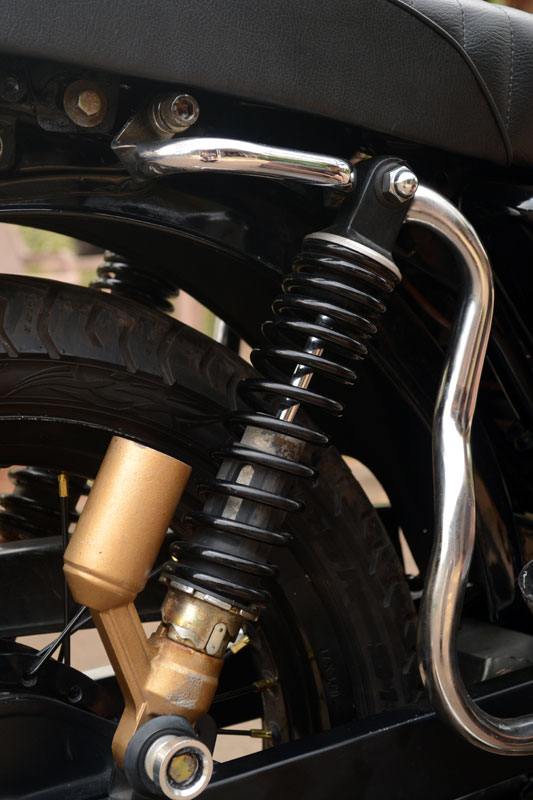 Keunikan lain, Diwa sapaan akrabnya, mencoba mengaplikasikan rangka Endure TS 100 yang ternyata sangat cocok untuk ubahan klasik harian macam itu.