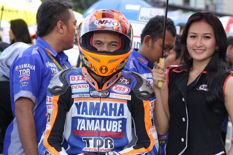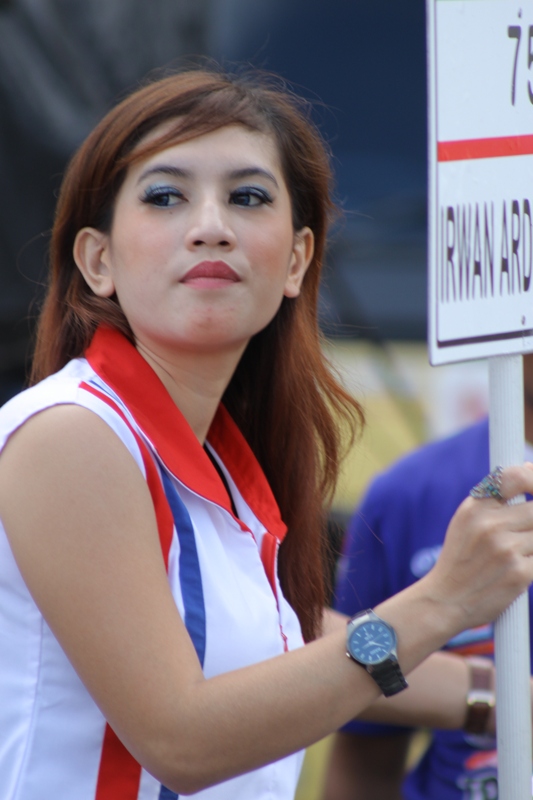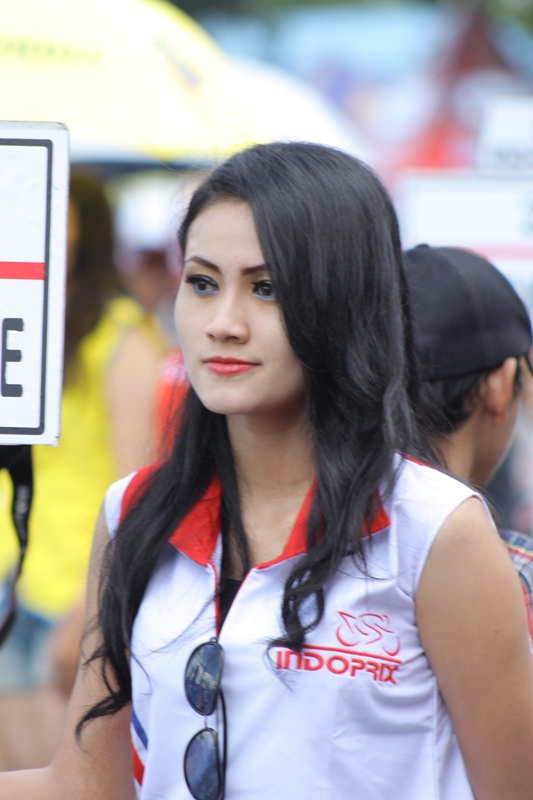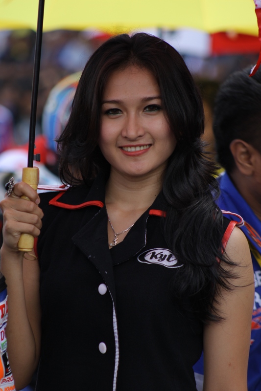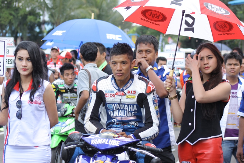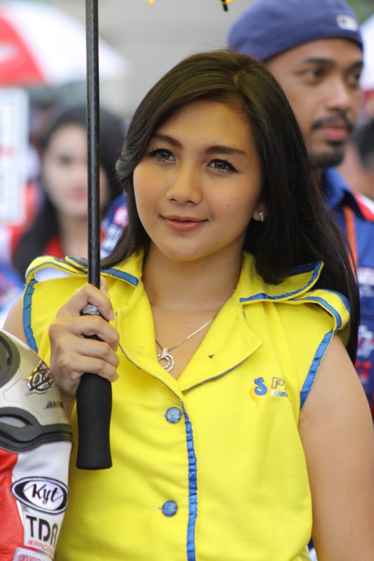 GILAMOTOR.com – Tak hanya cuacanya yang bikin gerah, pertarungan di seri pembuka Indoprix 2013 juga panas menyengat. Apa lagi adu gengsi motor-motor bebek injeksi. Tapi di sela-sela panasnya persaingan pembalap ada yang bikin adem. Para paddock girl yang memayungi para pembalap di grid.