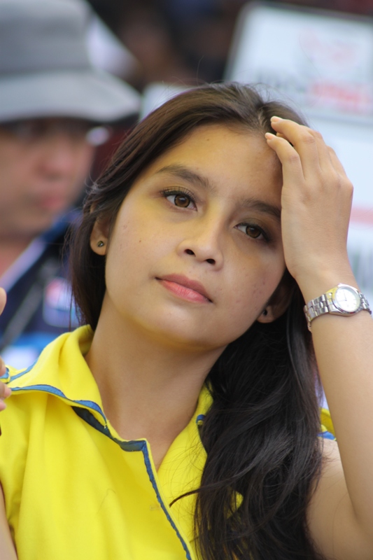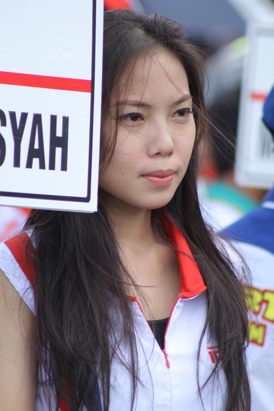 Yang adem sih si pembalapnya karena dipayungi para gadis cantik. Tapi orang-orang di sekelilingnya tetap saja kegerahan. Hehehee.