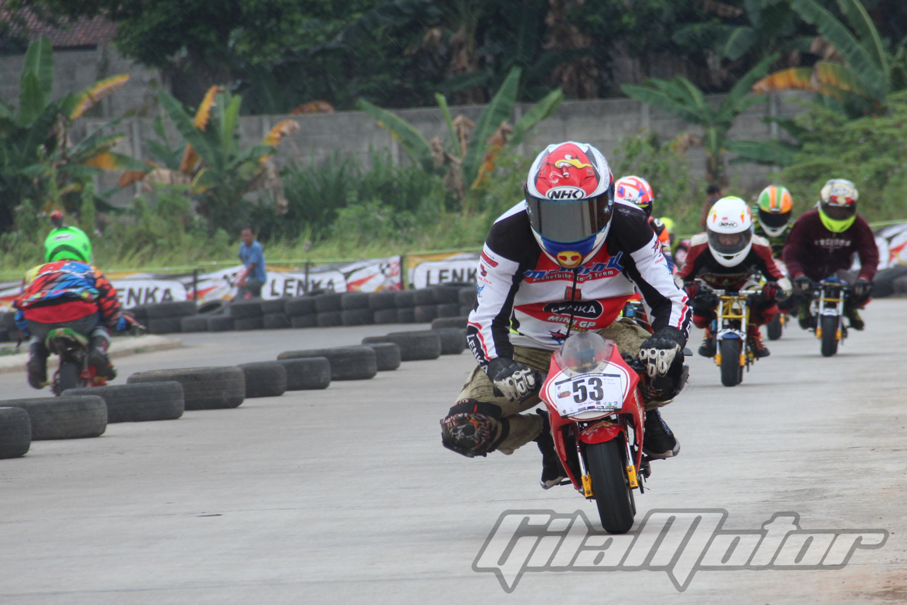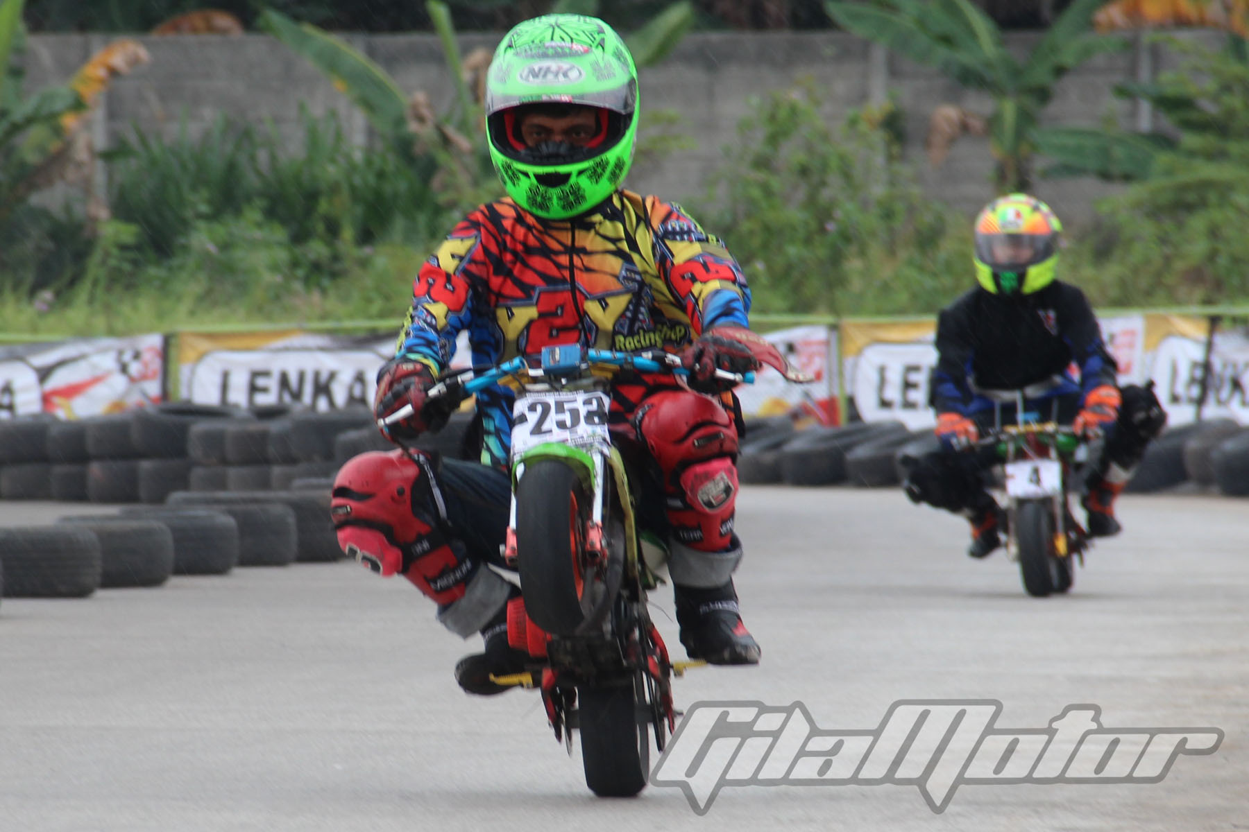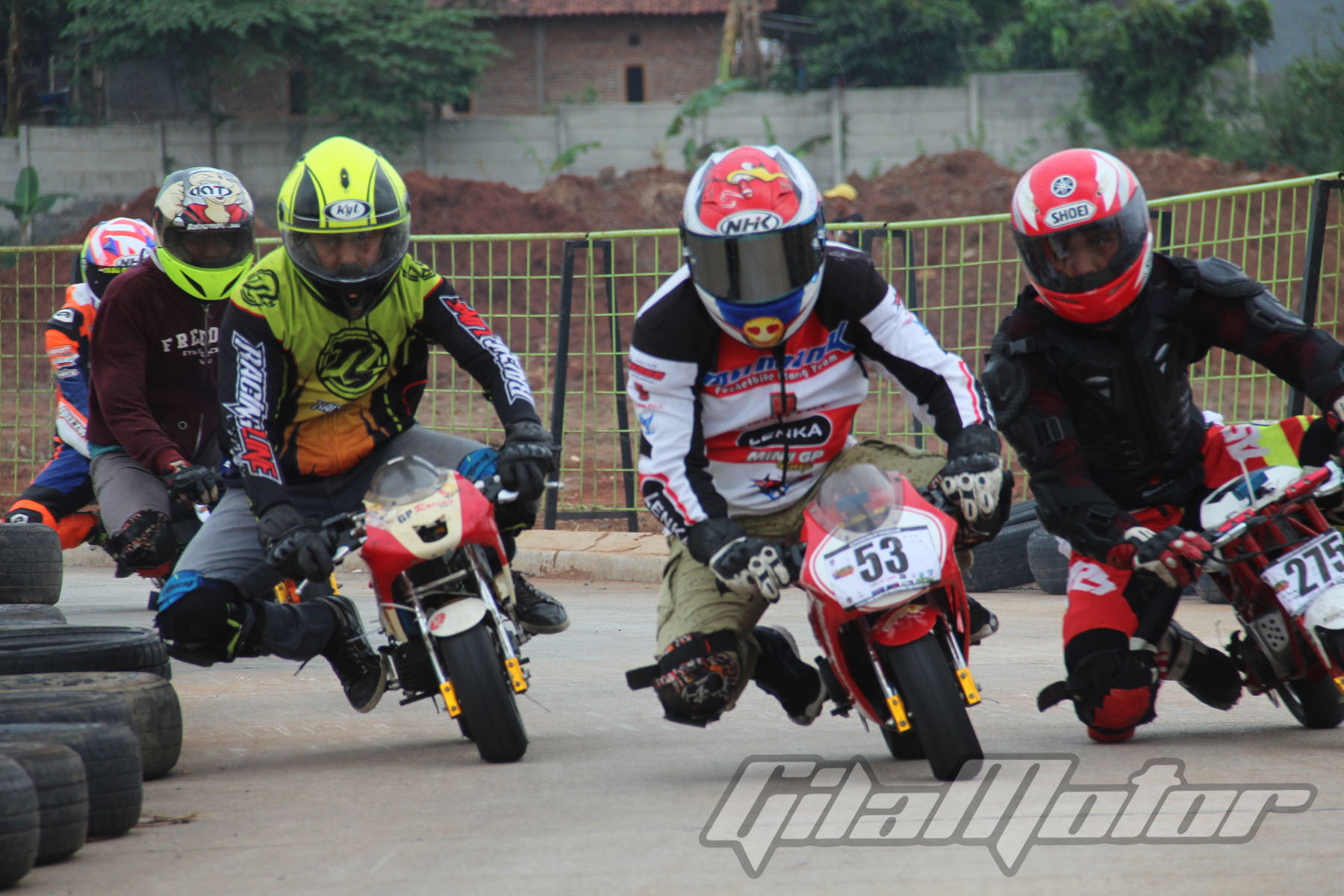 GilaMotor.com – Gilmoters, aura kompetisi pada ajang balap motor cebol alias MiniGP yang digelar di Sirkuit Vida, Bekasi, Minggu (1/10) silam terasa cukup kental. Persaingan ketat terjadi di semua kelas. Apalagi saat race kelas Pro Dewasa 60 kilogram, sengatan matahari sejak siang diganti dengan guyuran hujan Gilmoters. Meski belum begtu lebat, kondisi ini tentu menjadi tantangan bagi para pembalap.