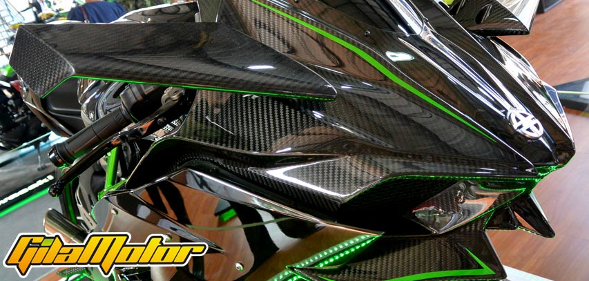 Maklum saja, karena Ninja H2R sendiri dibekali dengan tampilan gahar yang didesain divisi Aerospace dari induk Kawasaki Heavy Industry (KHI). Bukan hanya itu, selain aerodinamis, semua bodi Ninja H2R juga dibangun dari bahan karbon.