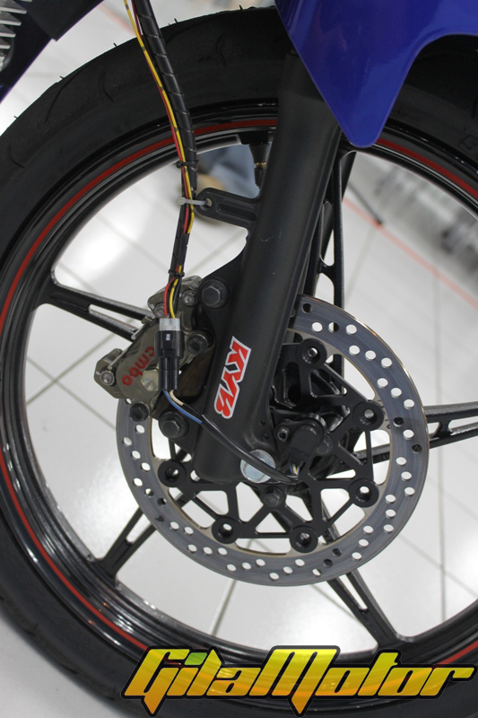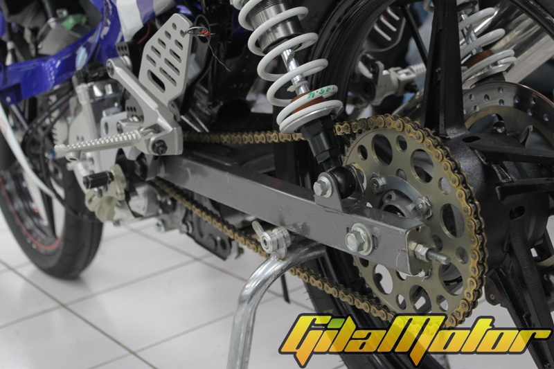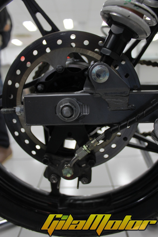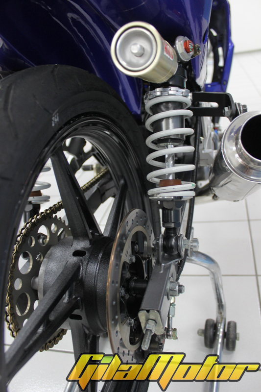 Jupiter Z1 yang dirombak jadi Jupiter Z1 Racing Edition ini banyak memanfaatkan komponen lokal. Meski ada beberapa komponen luar juga sih yang digunakan. Kalau masalah pakai komponen luar, itu urusannya menyangkut kebutuhan pengembangan performa. Berhubung di lokalan belum ada, yah mau nggak mau pakai komponen import. Tapi nggak sedikit komponen ori Jupiter Z1 yang dipakai di motor ini. Bener-bener ori bro en sis, nggak ditambahin ini-itu.“