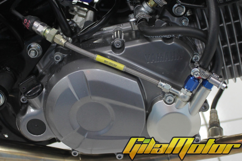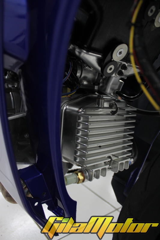 “Semaksimal mungkin kita gunakan original part, kecuali komponen-komponen yang memengaruhi performa,†ucap Supriyanto. Kalau itu sepertinya memang harus diubah, seperti piston dan silindernya. Makanya Yamaha bikin custom silinder head dan cover crankcase nya sampai ke Jepang. Maklum bro en sis, motor ini bakal kerja keras di rpm tinggi. Nggak cuma itu, mesin ini minum bengsin oktan tinggi juga yang waktu pembakarannya lebih lama, makanya butuh kompresi tinggi pula, jadi TMA (Tititk Mati Atas) nya jelas beda dengan mesin yang pakai oktan rendah. Mesin kerja keras di rpm tinggi, oktan tinggi dan tekanan ledakan pembakaran juga pastinya lebih besar, makanya butuh komponen yang tahan banting.