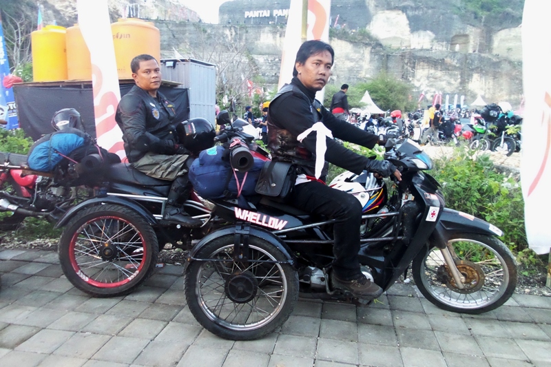 Adalah Djanwar Nugraha dan Asep ‘Whellow’ Nugraha dari komunitas Modif Disable Motor Federation Indonesia. Kedua bikers dengan kondisi kaki tak seperti kebanyak bikers yang hadir di hajatan tahunan bikers Honda itu bergerak dari Kota Kembang Bandung pada Minggu 23 November 2014 dan tiba di Pantai Pandawa pada 30 November 2014.