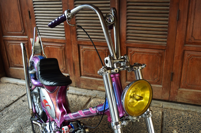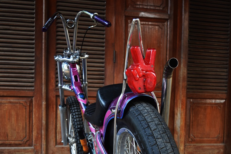 Gilamotor.com – Identik dengan kapasitas mesin besar dan stang tinggi menjadi style dari motor chopper Gilmoters. Namun tidak menutup kemungkinan bagi kalian yang ingin mendapatkan style chopper dengan kapasitas mesin kecil seperti yang dilakukan Muhammad Akbar Kiagung.