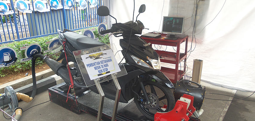 Ibrohim menjelaskan ban belakang Yamaha Mio M3 125 dibiarkan berjalan di atas dynotest tanpa berhenti. Sementara, kecepatan rata-rata yang ditetapkan adalah 35 km/jam dengan 4.500 rpm.
