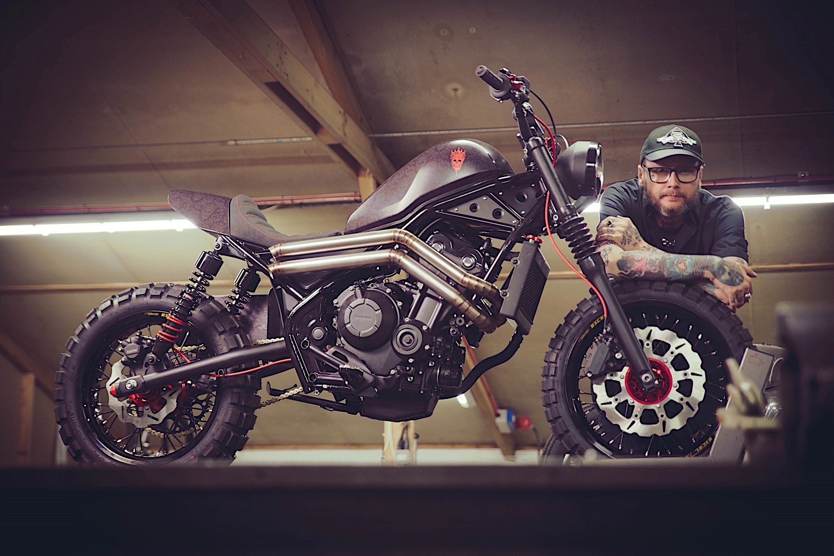Yang menjadi sorotan dari tampang Honda Rebel kustom satu ini adalah adanya tatto di sebagian besar permukaan bodinya. Tattoo tersebut merupakan karya dari seorang tatto artist asal Inggris bernama Dan Gold yang bisa dibilang sangat menginginkan karyanya nempel di Honda Rebel ini.